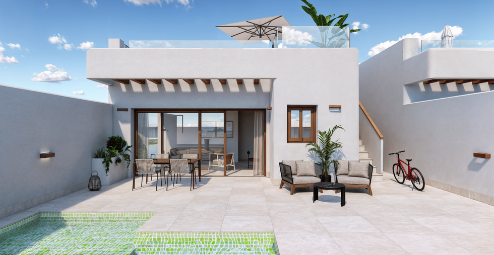 Objevte dokonalou kombinaci moderního designu a pohodlného bydlení v Residencial El Pasico Faze III, exkluzivním projektu přízemních vil v Torre Pacheco v Murcii. Každý dům je navržen tak, aby maximalizoval přirozené světlo a venkovní bydlení, a je vybaven soukromým bazénem, prostornou terasou a soláriem s letní kuchyní pro celoroční užívání.